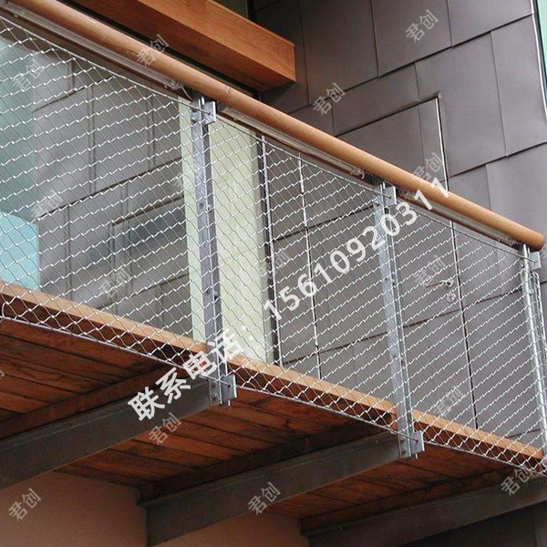 樓梯防護繩網:不銹鋼繩網(扶桿圍欄網)(扶桿防護網)(扶桿軟網)(扶桿柔性網)是由不銹鋼絲繩上下絞織與鋼套擠壓而成,鋼絲繩直徑有1.0、1.5、2.0、3.0mm,鋼絲繩結構有7*7、7*19、1*19等,材質有304、304L、316、316L,其次我們還可以提供熱鍍鋅鋼絲繩網產品。鋼套材質主要采用不銹鋼套,其它還有鋁套、銅套、銅鍍錫套以供客戶選擇。